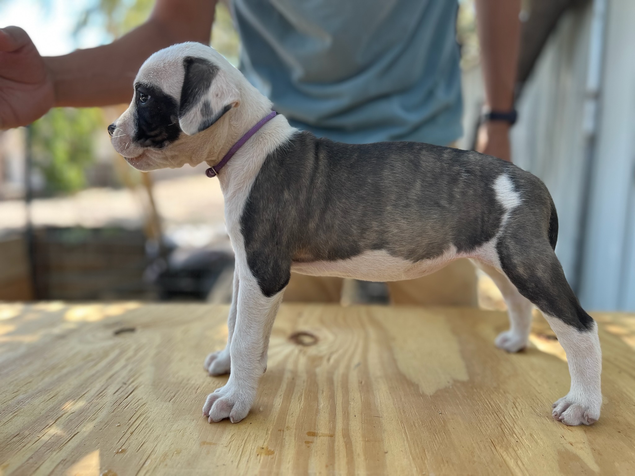 Bubba is a very sweet and stable-tempered dog. He has very high prey drive and excellent hip health. This dog is a sweetheart around the family and kids. We expect he will pass on his good natured temperament and high athleticism.
